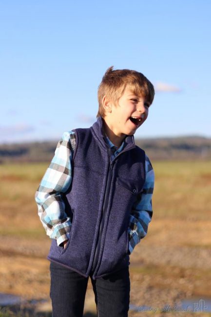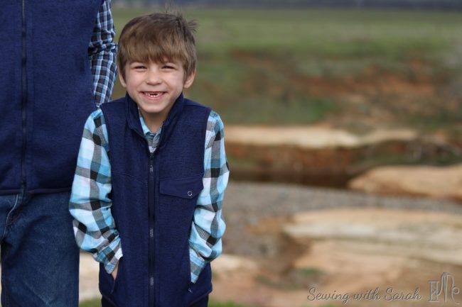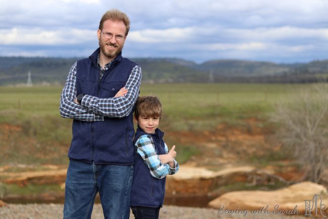 Of course, matching vests meant a daddy and me photo shoot! Such handsome guys! My other son, O, has a copy in the works, and I’ve got some delicious So Sew English fleece performance fabric earmarked for my own vest!