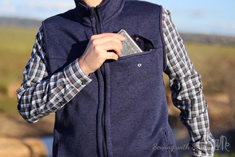 The patterns come in men’s, women’s and kids versions, and though I plan to sew them all, for the pattern testing phase I limited myself to the men’s and kids version. With options for front and back color blocking or a solid front/back, zippered or open hand pockets, and a chest zip with a flap, these vests are highly versatile pieces with great style.