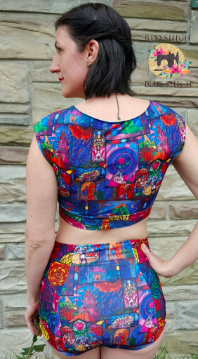 Both a crop and swim are made the exact same way with minor differences. I sized my swim top down because when fabric gets wet, it gets looser. My crop I made my regular size.